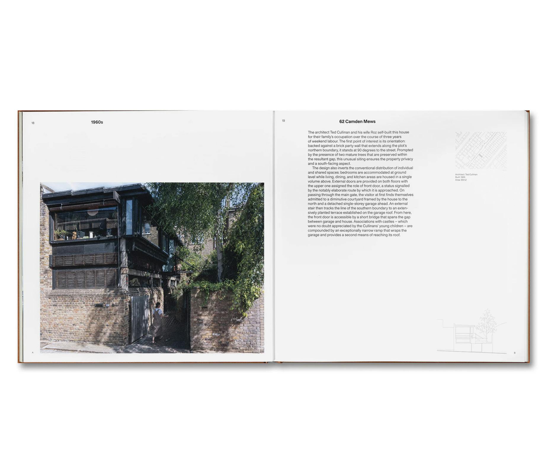 本書は、1960年代から現代に至るこの豊かな伝統の17つの事例を、新たな写真と詳細なドローイングと共に記録する。特に建築家の自邸を詳細に取り上げ、ジョン・ウィンター(John Winter)、エドワード・カリナンとロズ・カリナン(Ted and Roz Cullinan)、ピーター・セント・ジョン(Peter St John)とシウ・トーマス(Siw Thomas)らの作品が含まれる。 建築評論家であるエリス・ウッドマン(Ellis Woodman)が、陶芸家であるルーシー・リー(Lucie Rie)ら初期の先駆者から、ピーター・バーバー(Peter Barber)の記念碑的建造物「Edgewood Mews」(2022年)やアル=ジャワド・パイク(Al-Jawad Pike)の「Chowdhury Walk」(2023年)に代表される新たな住宅開発モデルとしてのミューズハウスの可能性に至るまで、この不朽の人気を博す建築形態の歴史を綴る。