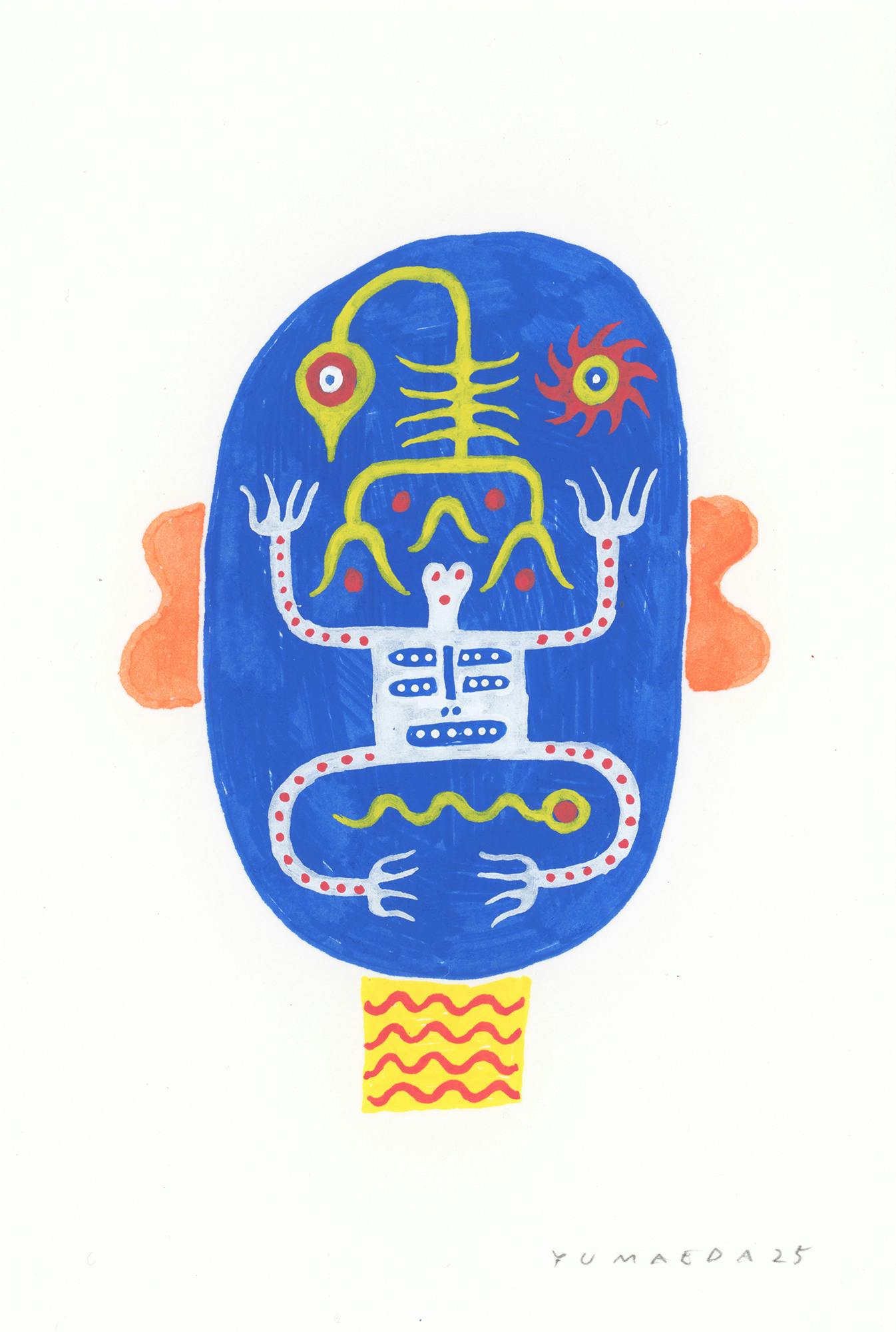 前田裕は、国内外で絵画や陶芸作品を発表し、自然や生命の営みを独自の視点から探求してきたアーティストです。西洋と東洋の芸術やアニミズムなどから影響を受け、絵画や立体、アニメーションを通して、新しい視覚表現を模索しています。自然や生き物の形を、単純な丸や直線、曲線で再構築し、多角的に観察できるイメージを生み出しています。