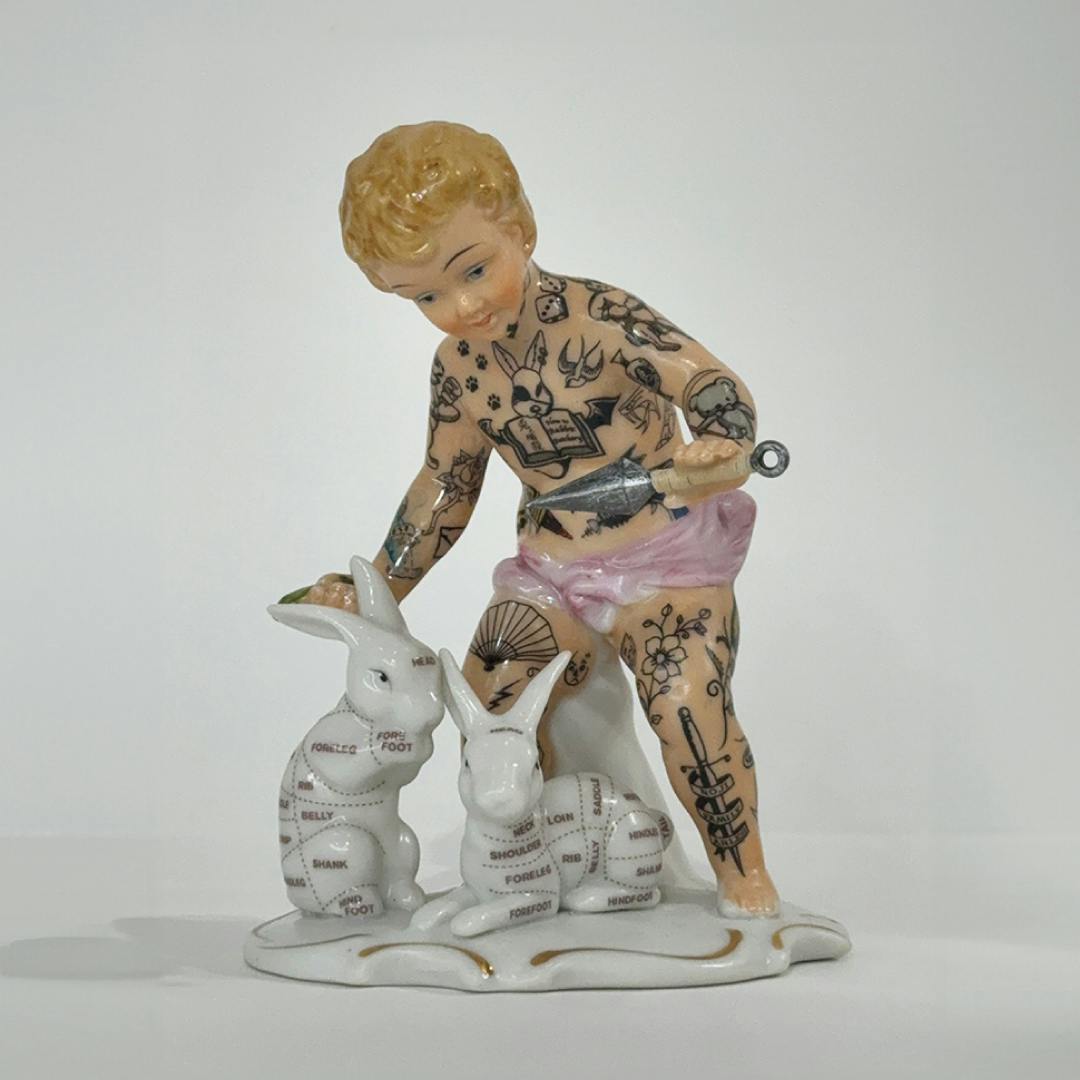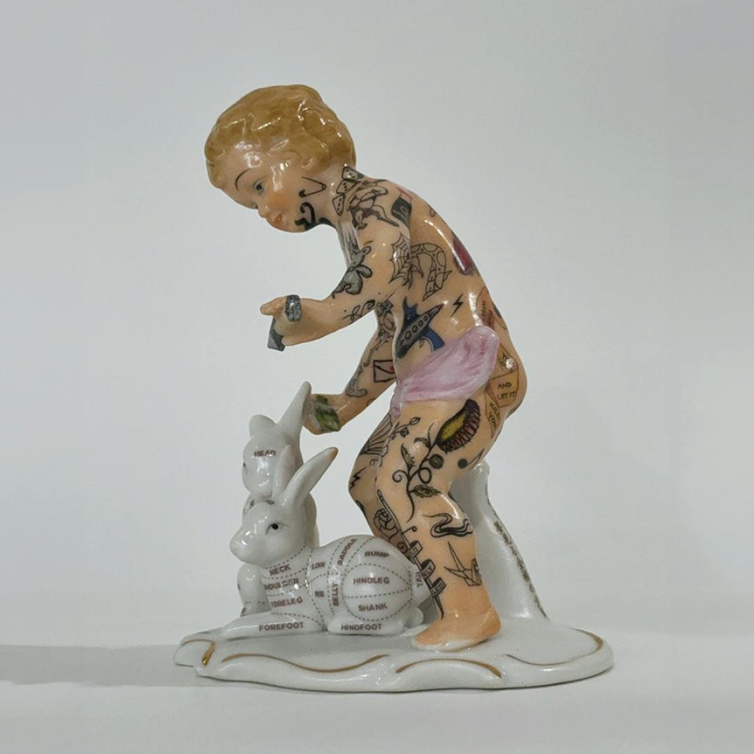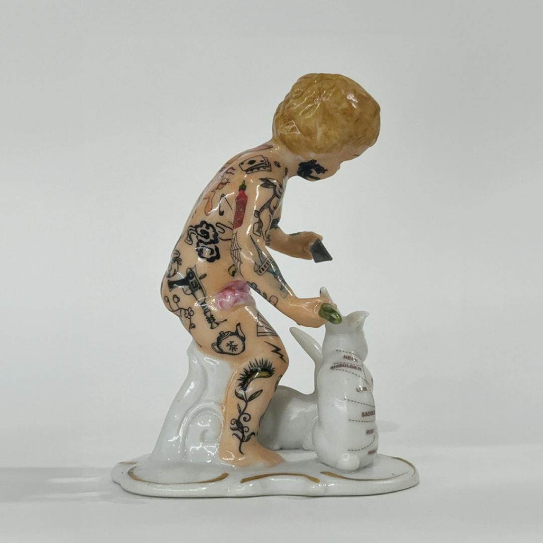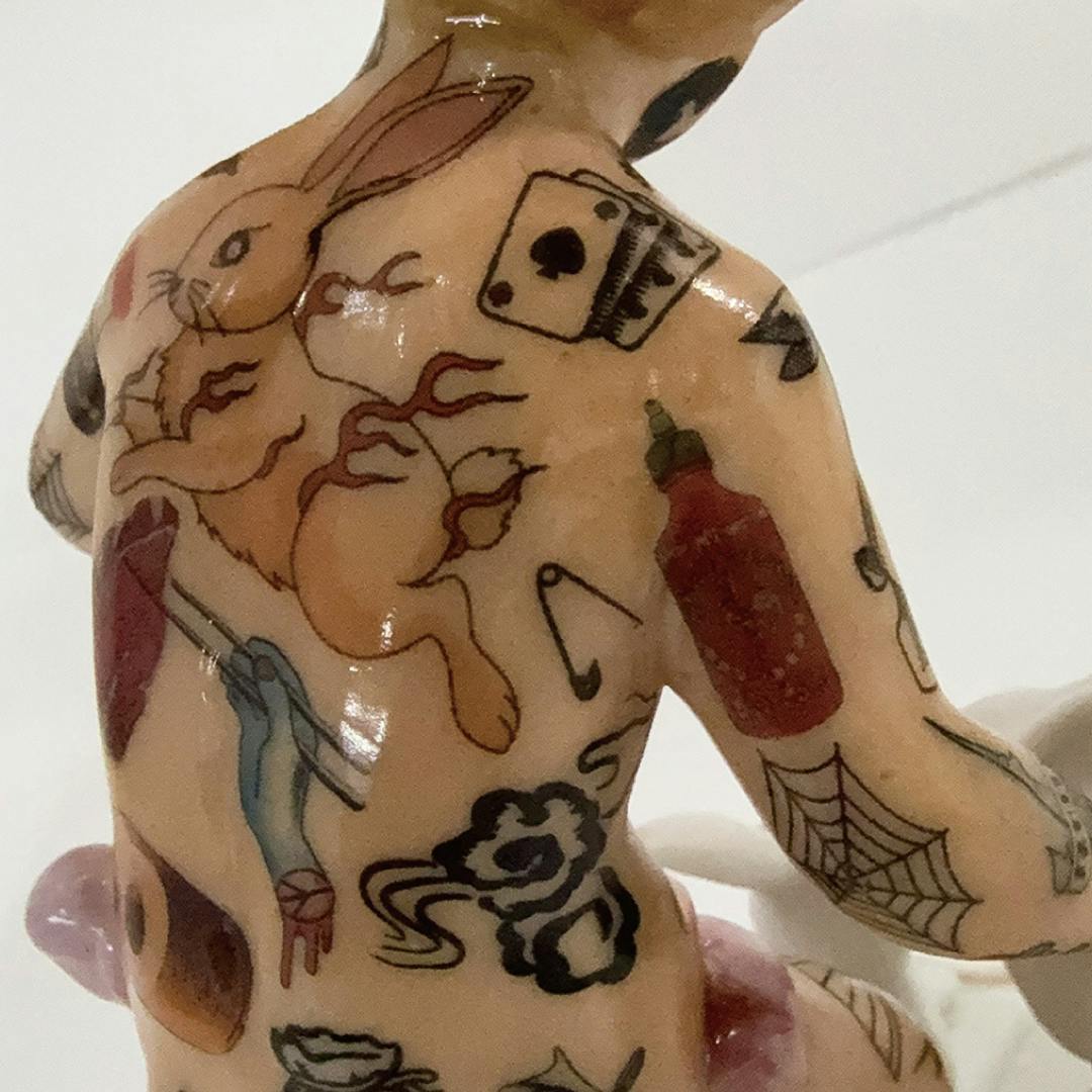 ヨーロッパ製の陶器人形、ポーセリンドールにタトゥーアートを施した