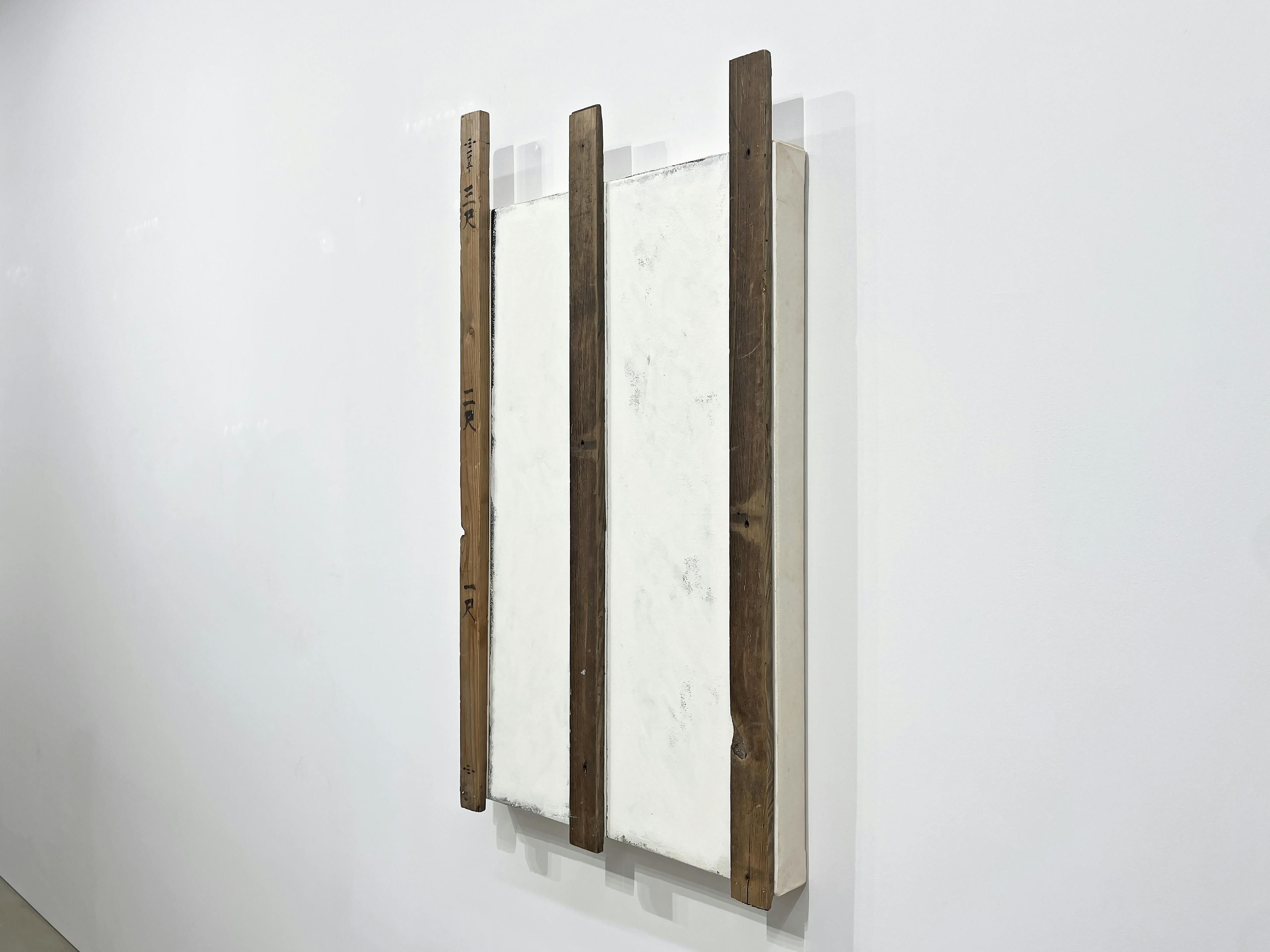 本展では、作家晩年に制作されたレリーフ状の平面作品を中心に紹介いたします。ポリウレタンや木材、油 彩などの素材を組み合わせたこれらの作品は、かつての大規模なインスタレーションに見られた「物質の重 さ」や「反射の構造」を、より凝縮された形で内包しています。そこには、触知可能な表面と不可視の深層 とが共存する、原口の最晩年における思索的な試みが示されています。